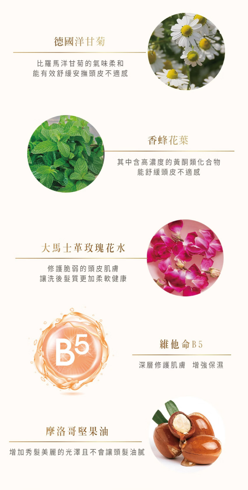全新改版,24小時控油、持香、蓬鬆。本洗髮精不含矽靈,洗起來澀澀的是正常的唷,搭配護髮素使用毛髮就會呈現絲綢般柔順。