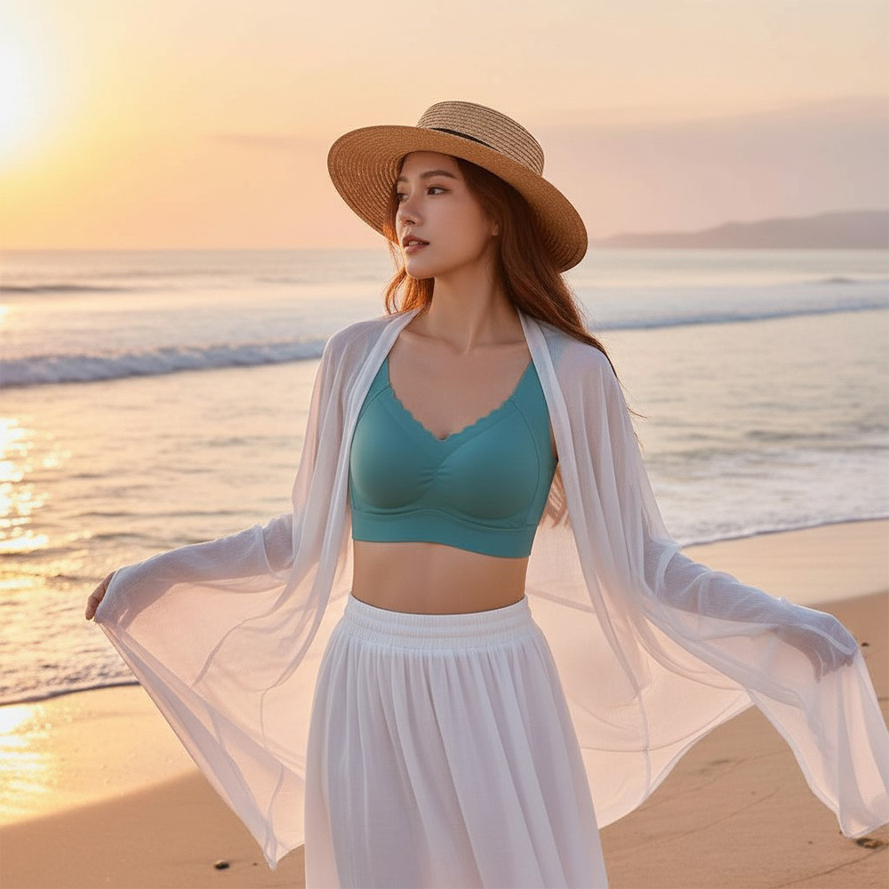 24H睡眠 一片式 無鋼圈舒適無痕胸衣(湖水綠)