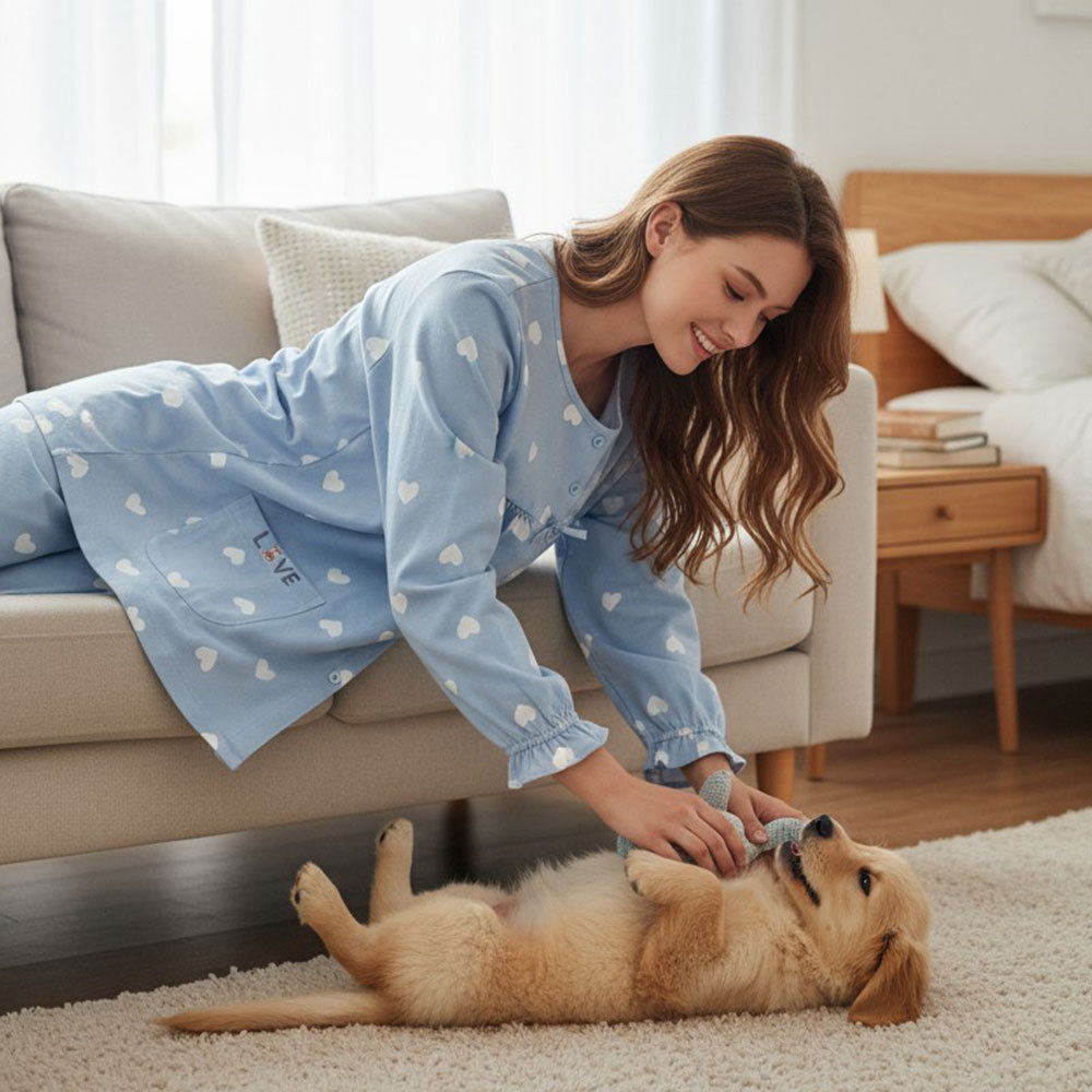 愛心滿屋 柔軟舒眠棉質 睡衣睡褲成套組(藍色)